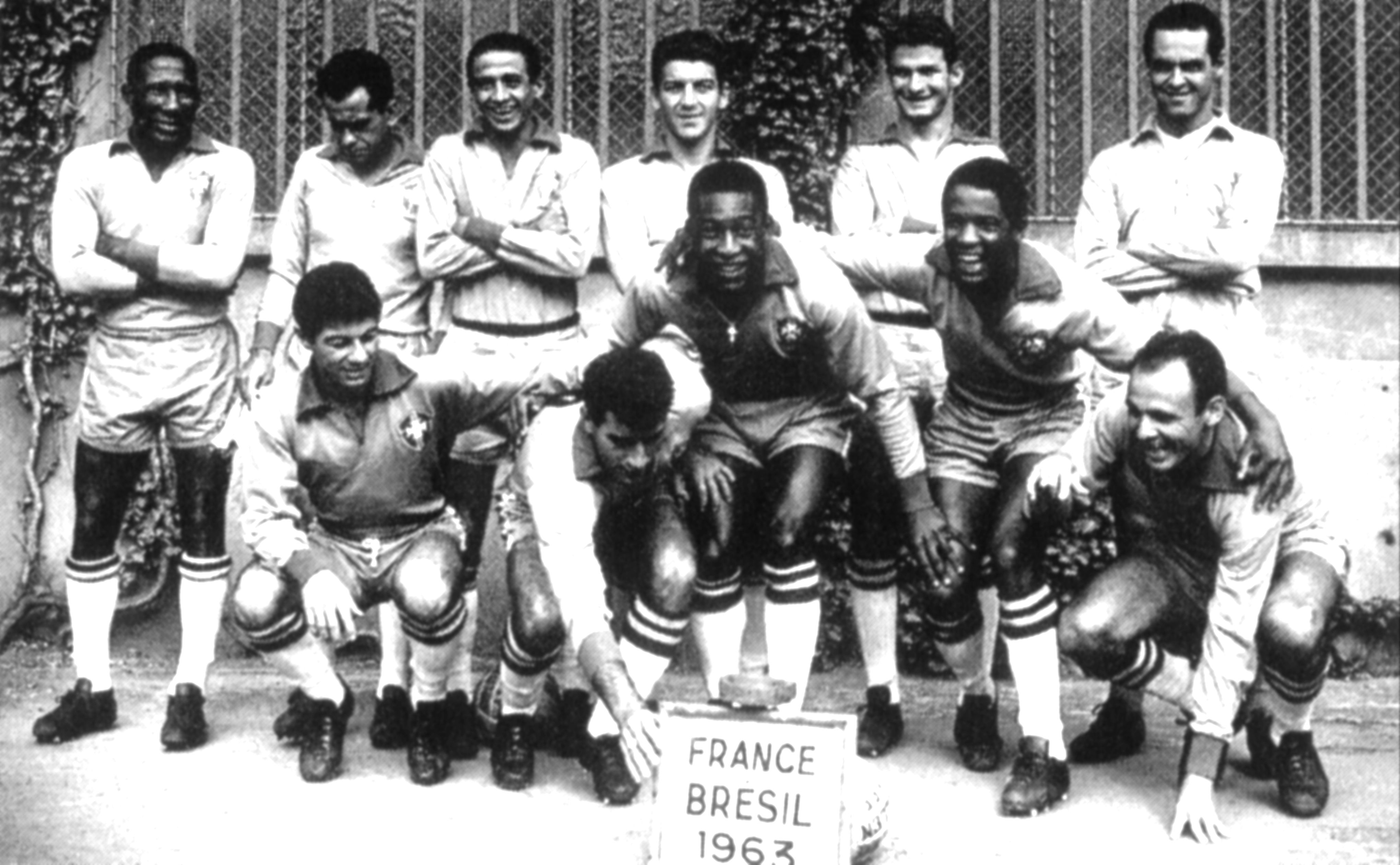 Titulares da Seleção Brasileira para o amistoso com a França, em 28 de abril de 1963; Brasil venceu por 3 a 2, com três gols de PeléCréditos: Arquivo CBF