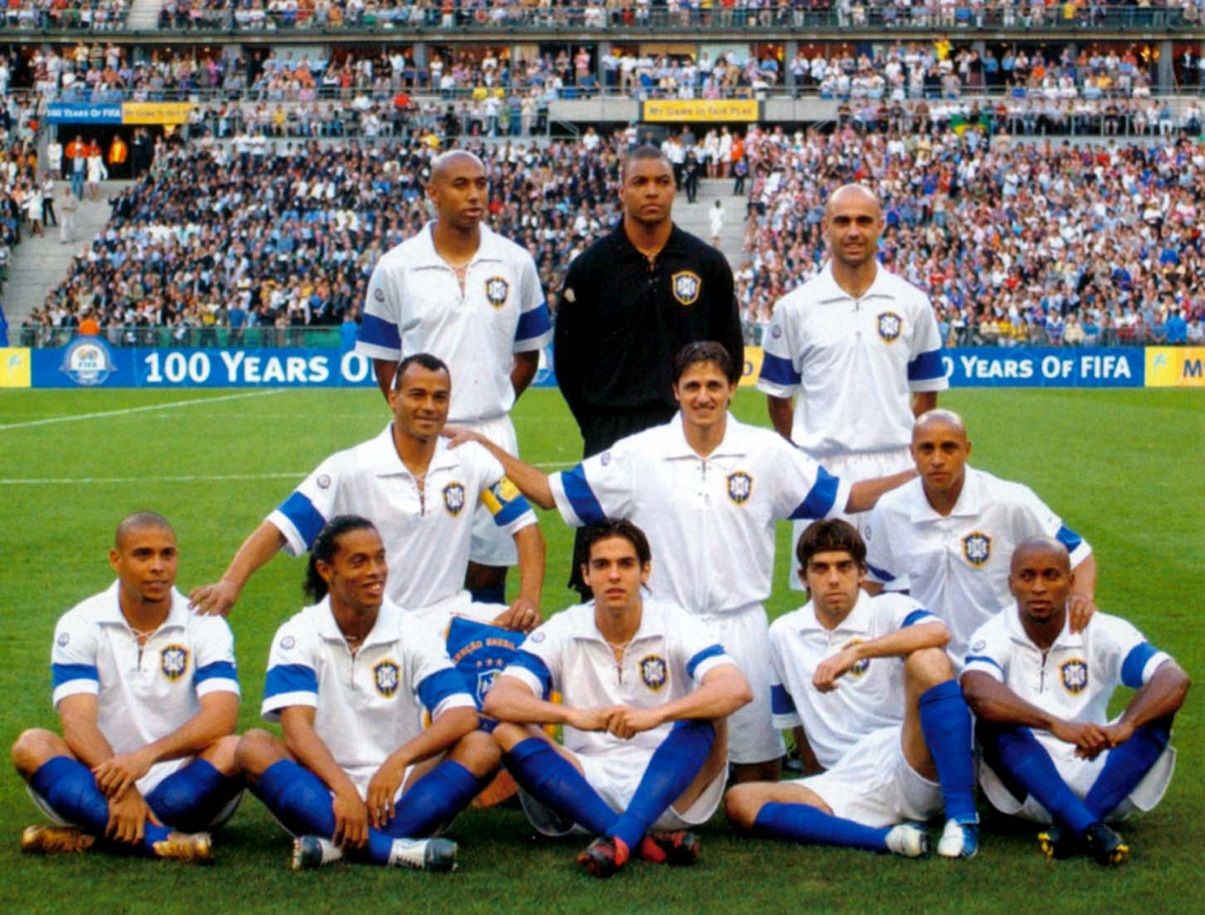 Time titular da Seleção Brasileira no amistoso comemorativo ao centenário da FIFA com a França, em 20 de maio de 2004, no Stade de FranceCréditos: Arquivo CBF