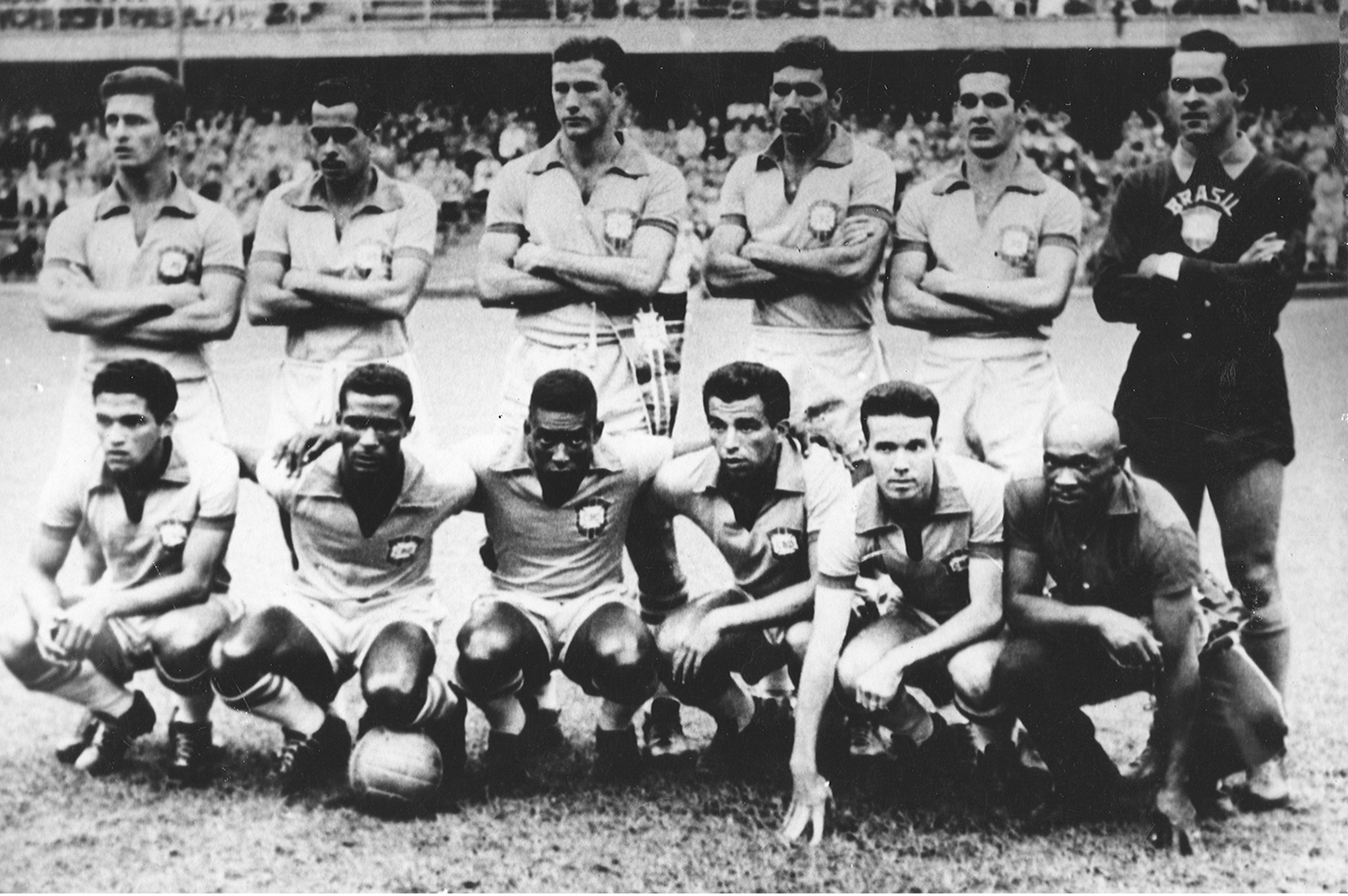 Escalação da Seleção Brasileira para a semifinal da Copa do Mundo de 1958 contra a França, no Estádio Rasunda, em 24 de junho de 1958Créditos: Arquivo CBF